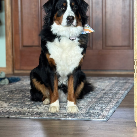 Josie may be a Bernese Mountain Dog, but she’s a little lady by Berner standards. Getting compliments everywhere she goes (and she goes everywhere her mom goes!) she’s a perfectly petite 80 lbs with a big, loving, heart and soulful eyes. She’s known as the gentle “giant” of her home and office, even if she’s not quite so giant. However, Josie thinks she’s smaller than she is when she climbs up for cuddles: “Small” for a Bernese is still pretty big!